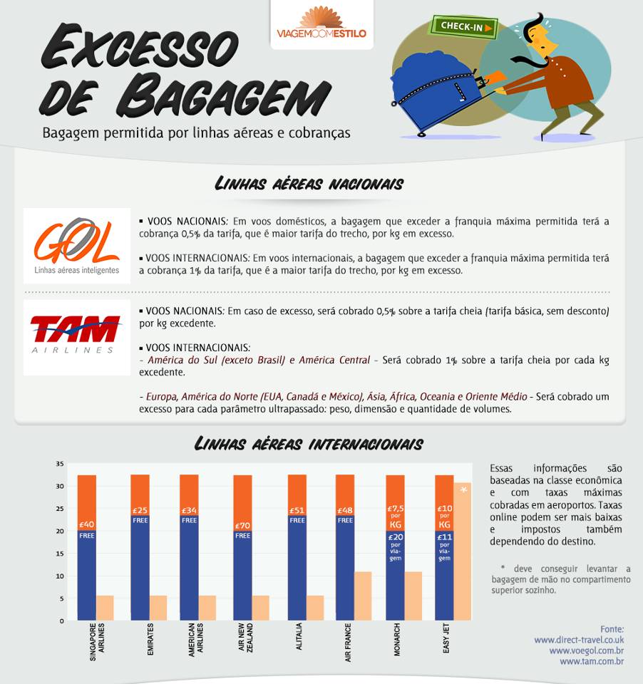 Saiba como as companhias aéreas cobram por excesso de bagagem