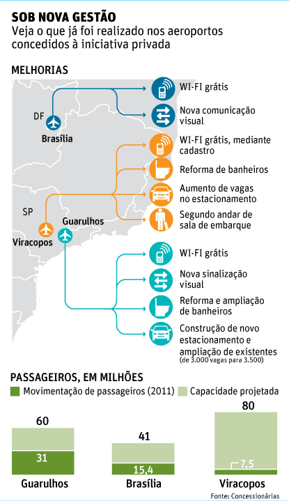 A iniciativa privada assumiu a administração de Guarulhos e Viracopos em meados de novembro, e a de Brasília, em 1º de dezembro.