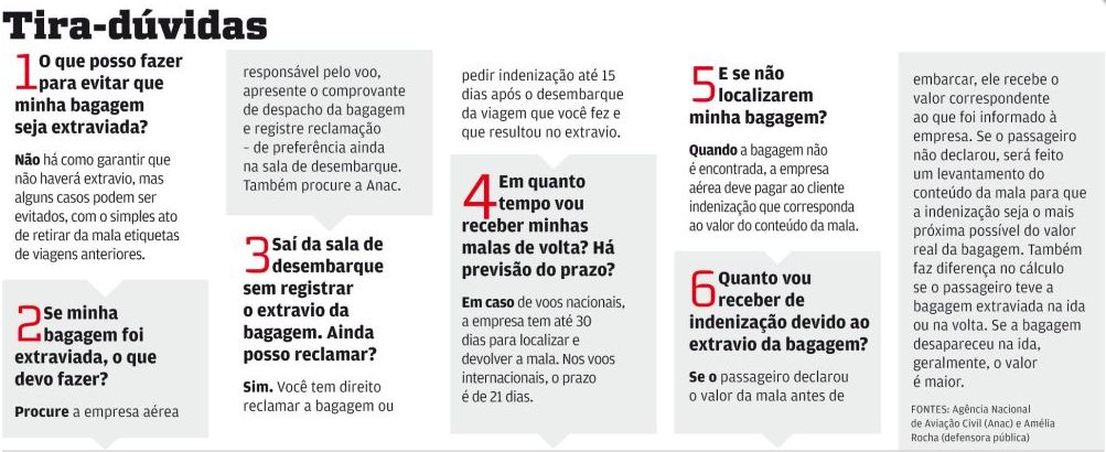 Quando a mala é extraviada, o cliente deve procurar a empresa aérea e a Agência Nacional de Aviação Civil (Anac). elefone da Anac: 0800 725 4445. Site: www.anac.gov.br