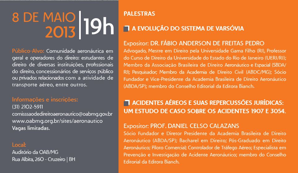 OAB-MG promove seminário sobre aspectos jurídicos do Transporte Aéreo
